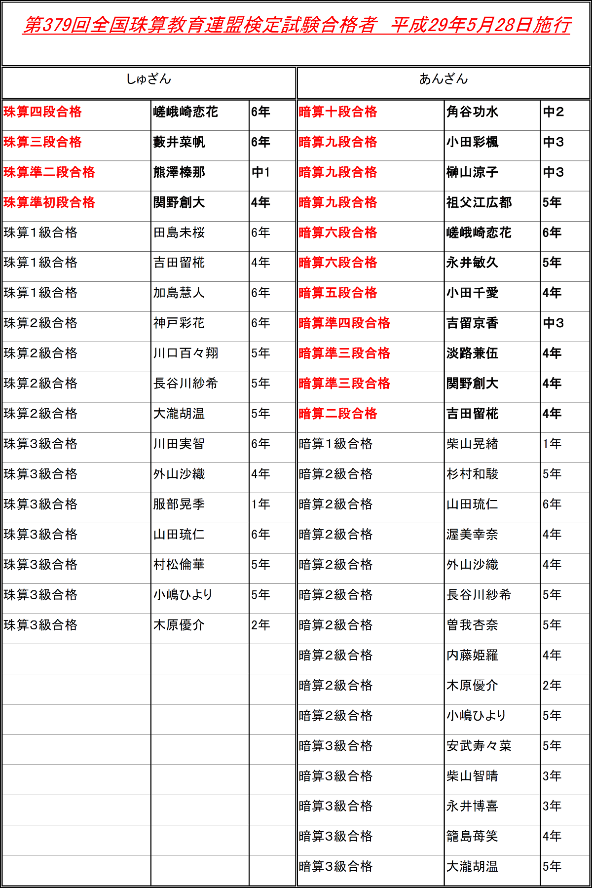 今回、当塾生 第6代暗算十段が誕生しました!おめでとう!