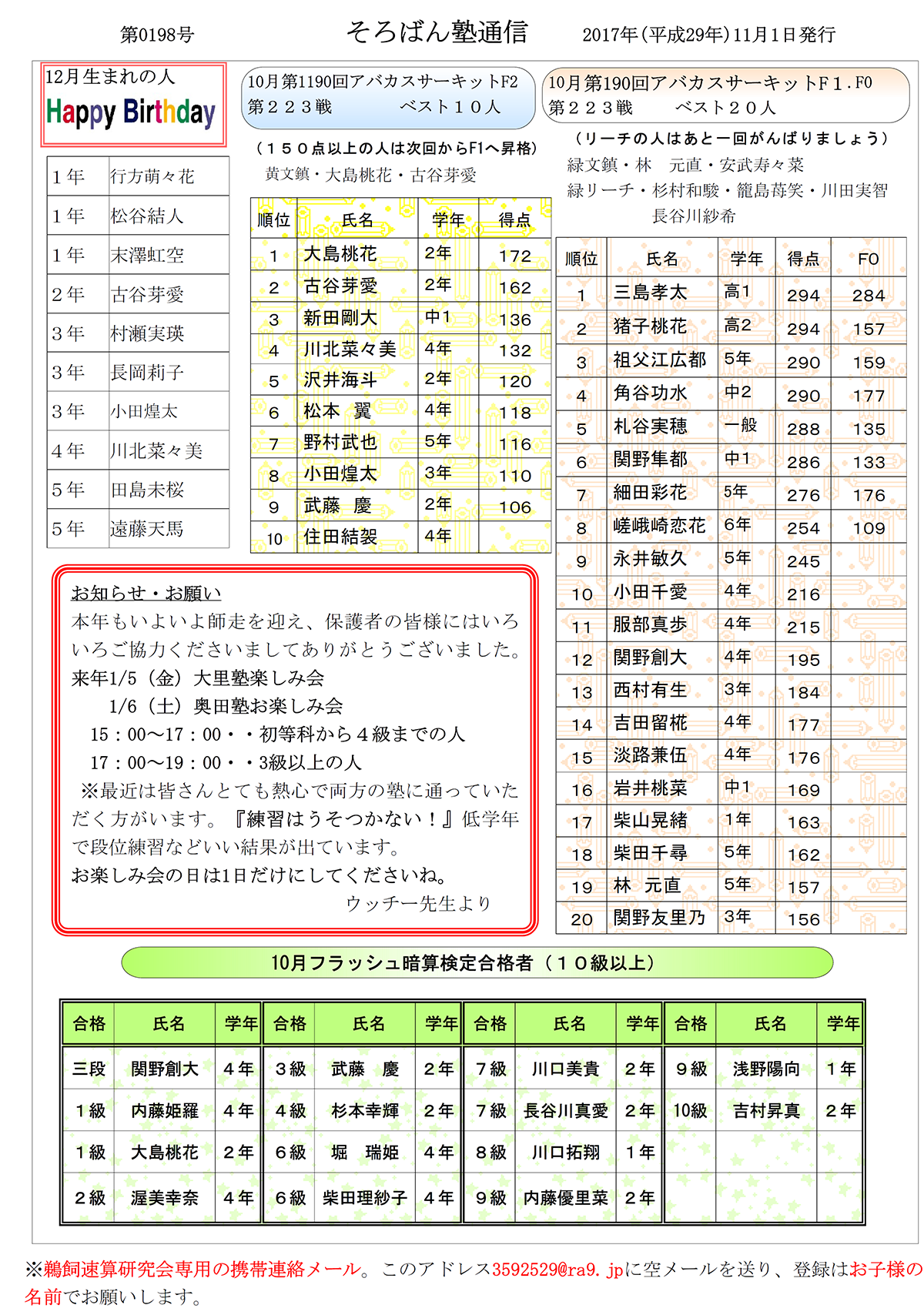 そろばん塾通信:第199号