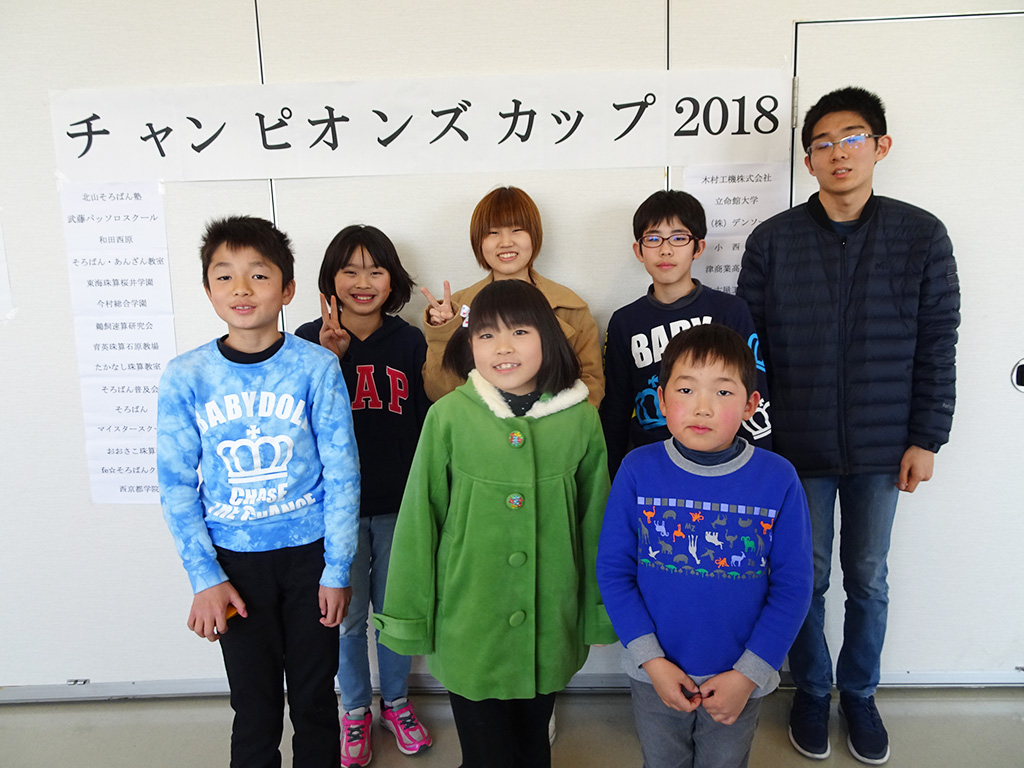 2月の競技大会 2018年2月24日(土) チャンピオンズカップ2018 2018年2月24日安城商工会議所にて、チャンピオンズカップ2018開催されました。 4年生の小田千愛選手、高校生の三島孝太選手が総合と読み上げ算に入賞しました。
