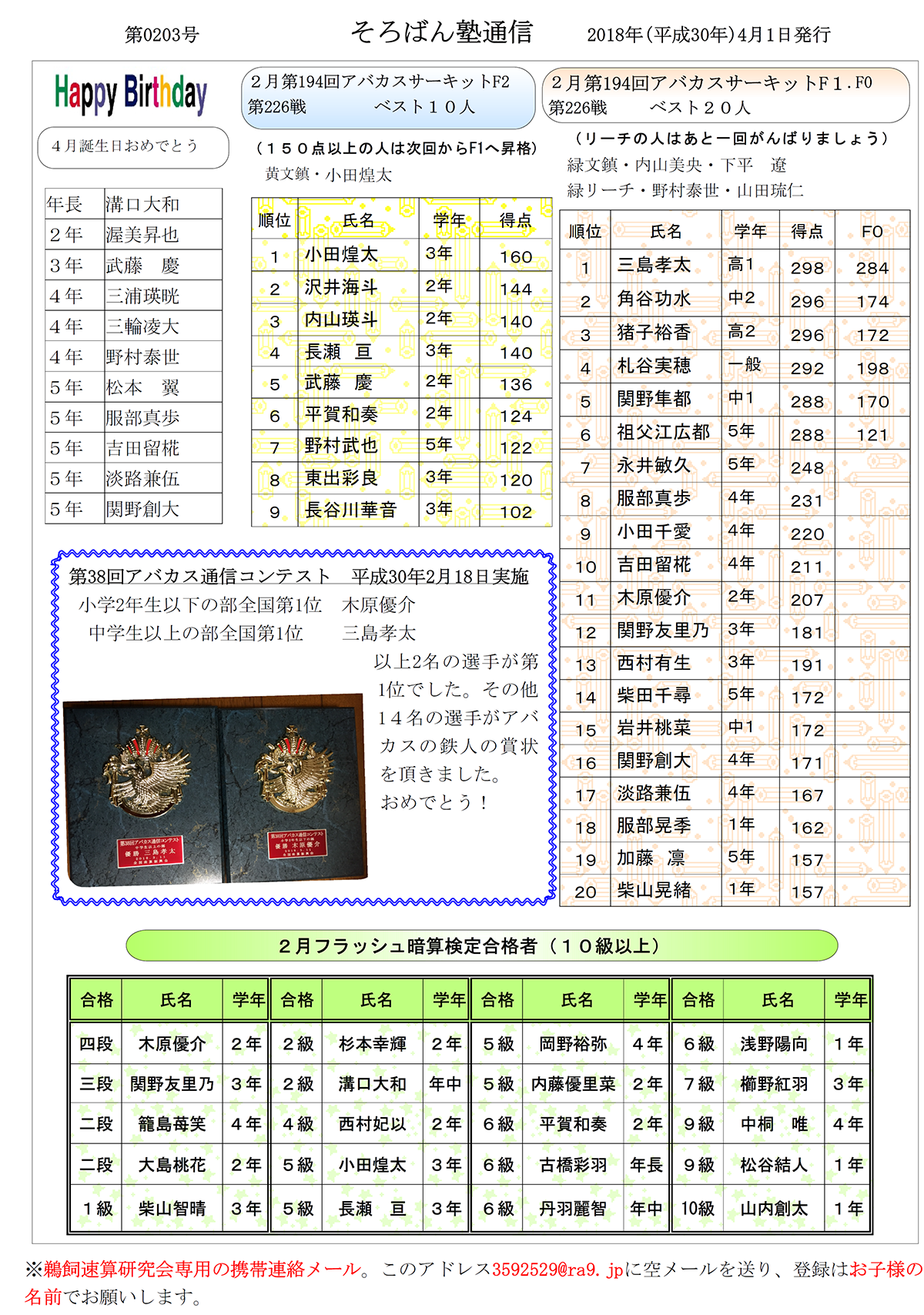 そろばん塾通信:第203号