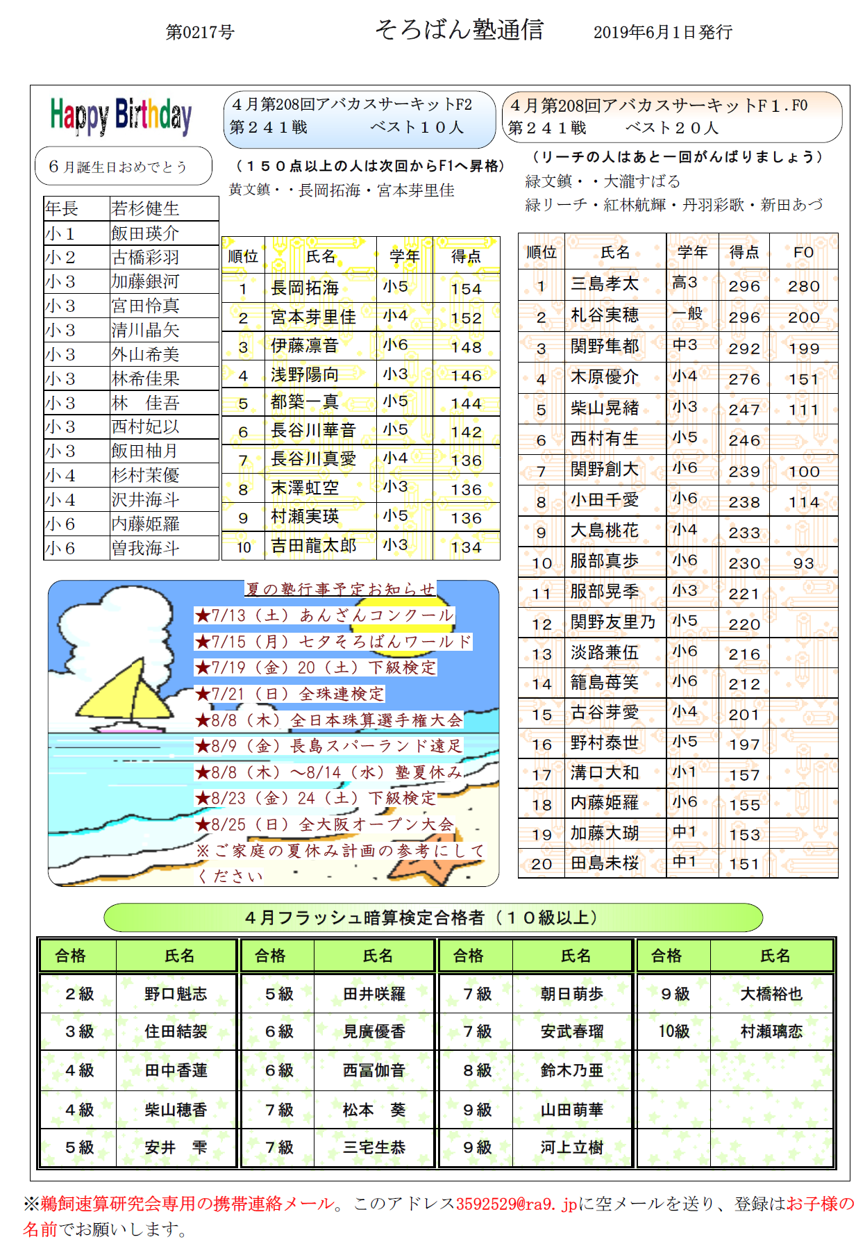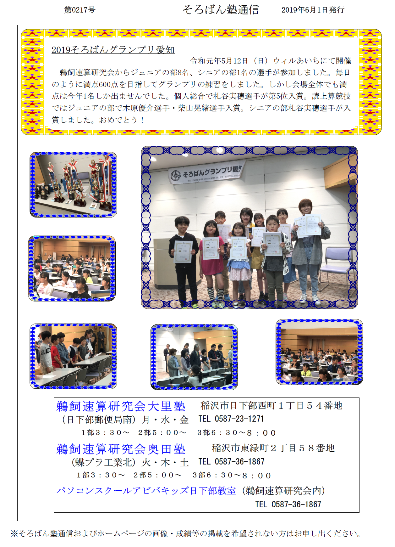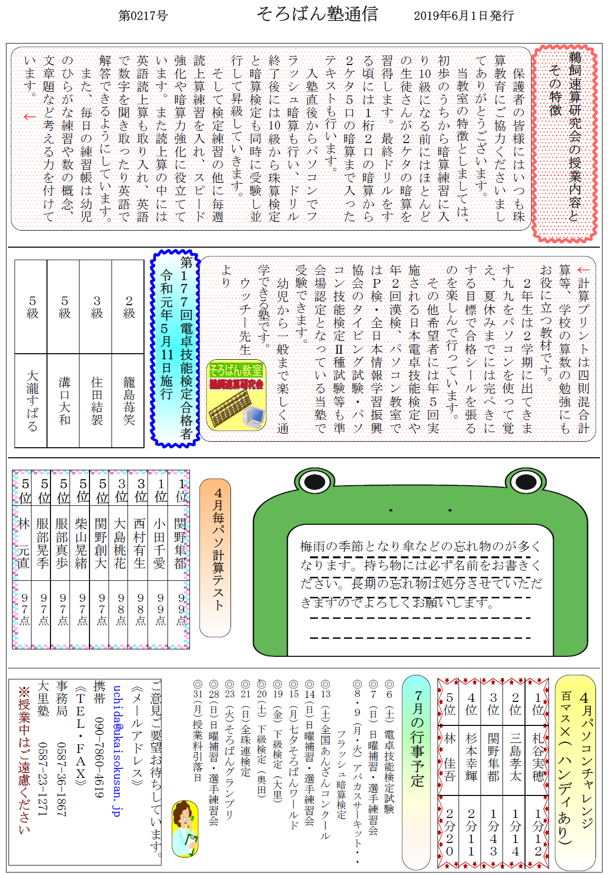 そろばん塾通信:第217号