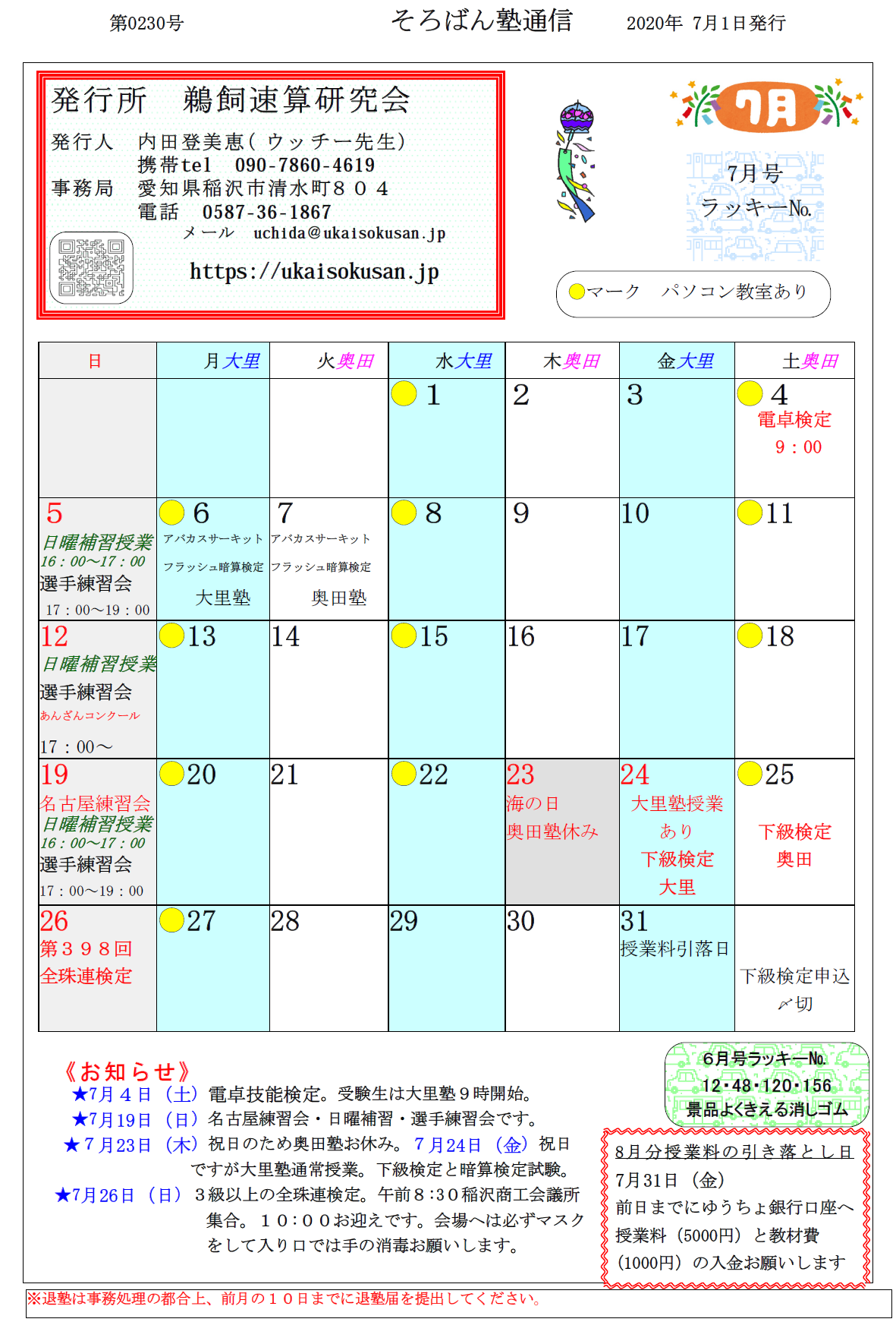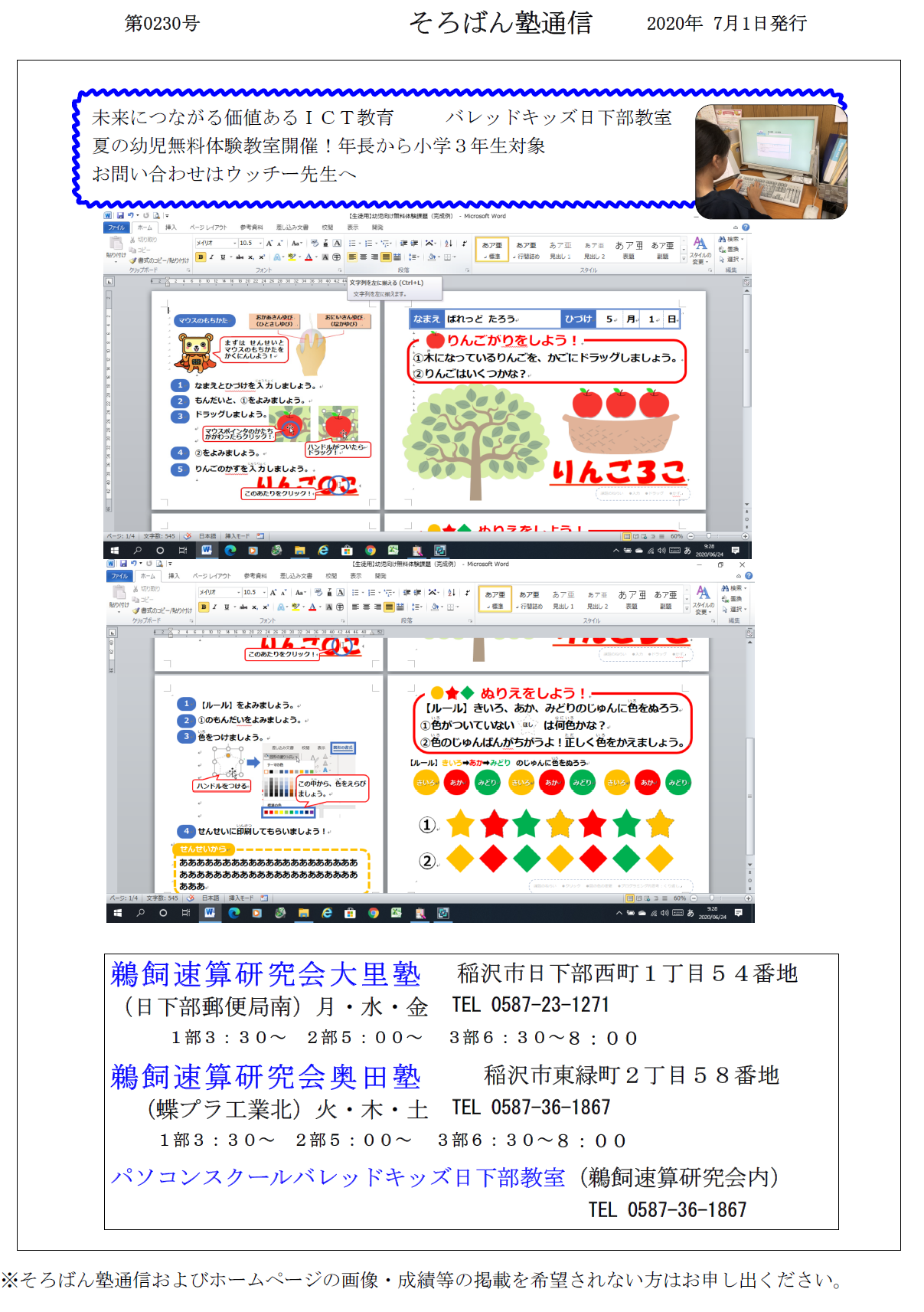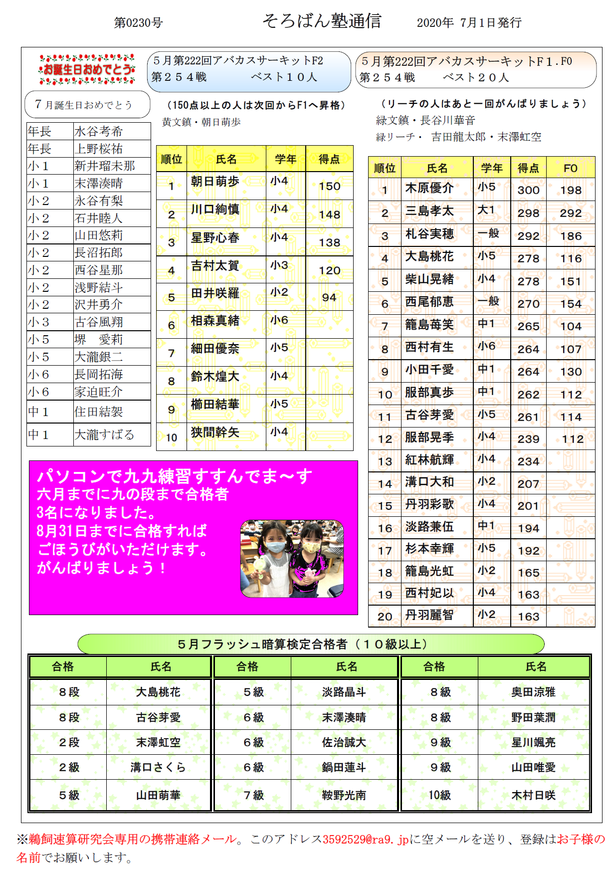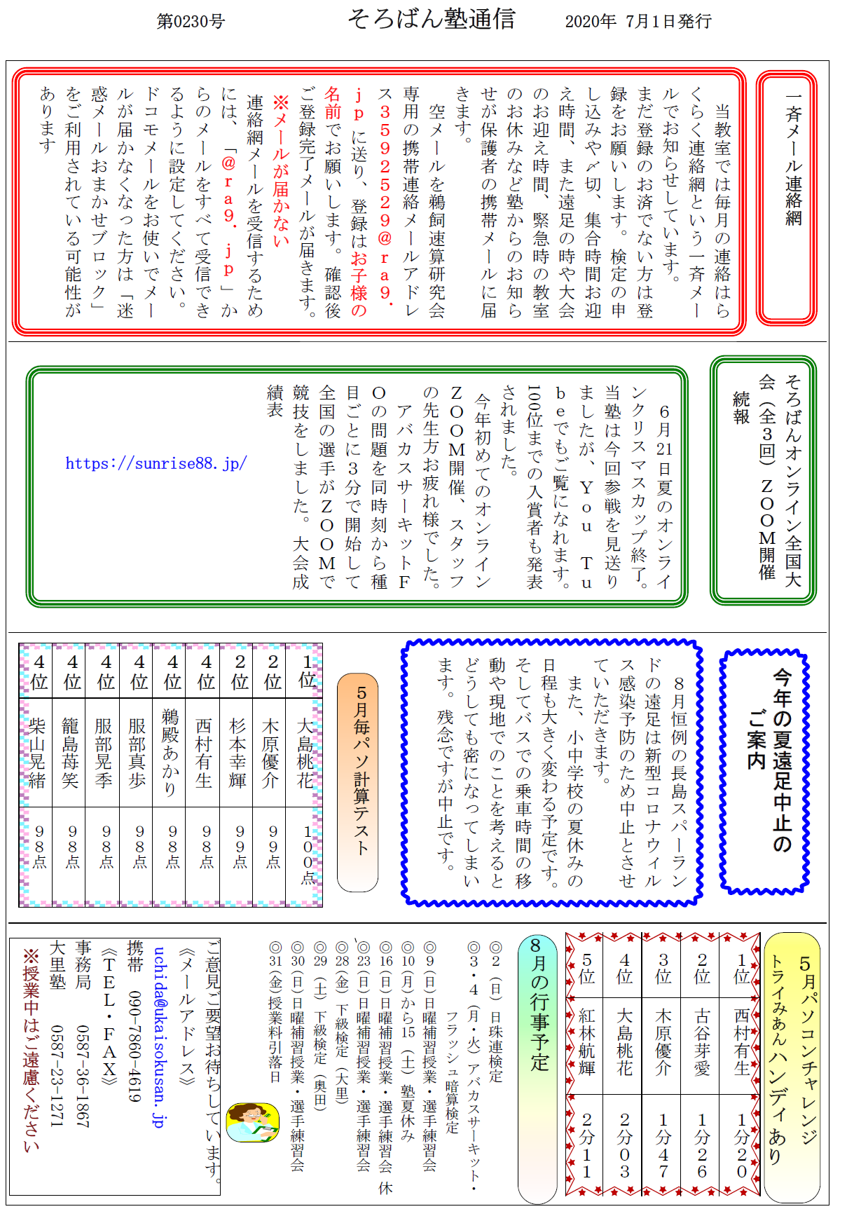 そろばん塾通信:第230号