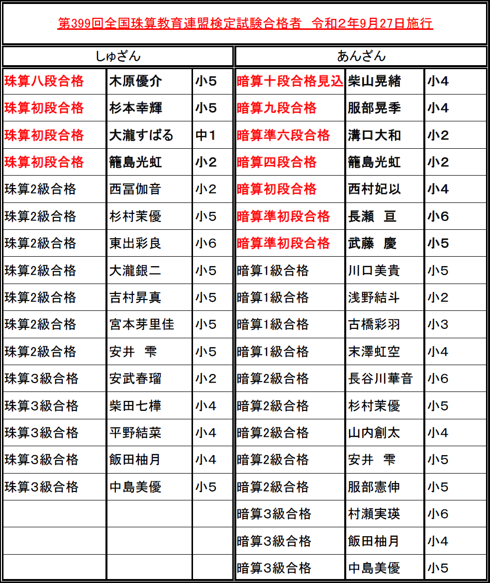 暗算10段合格者がいますが、本部審査の結果は1か月後に正式発表です。楽しみですね。