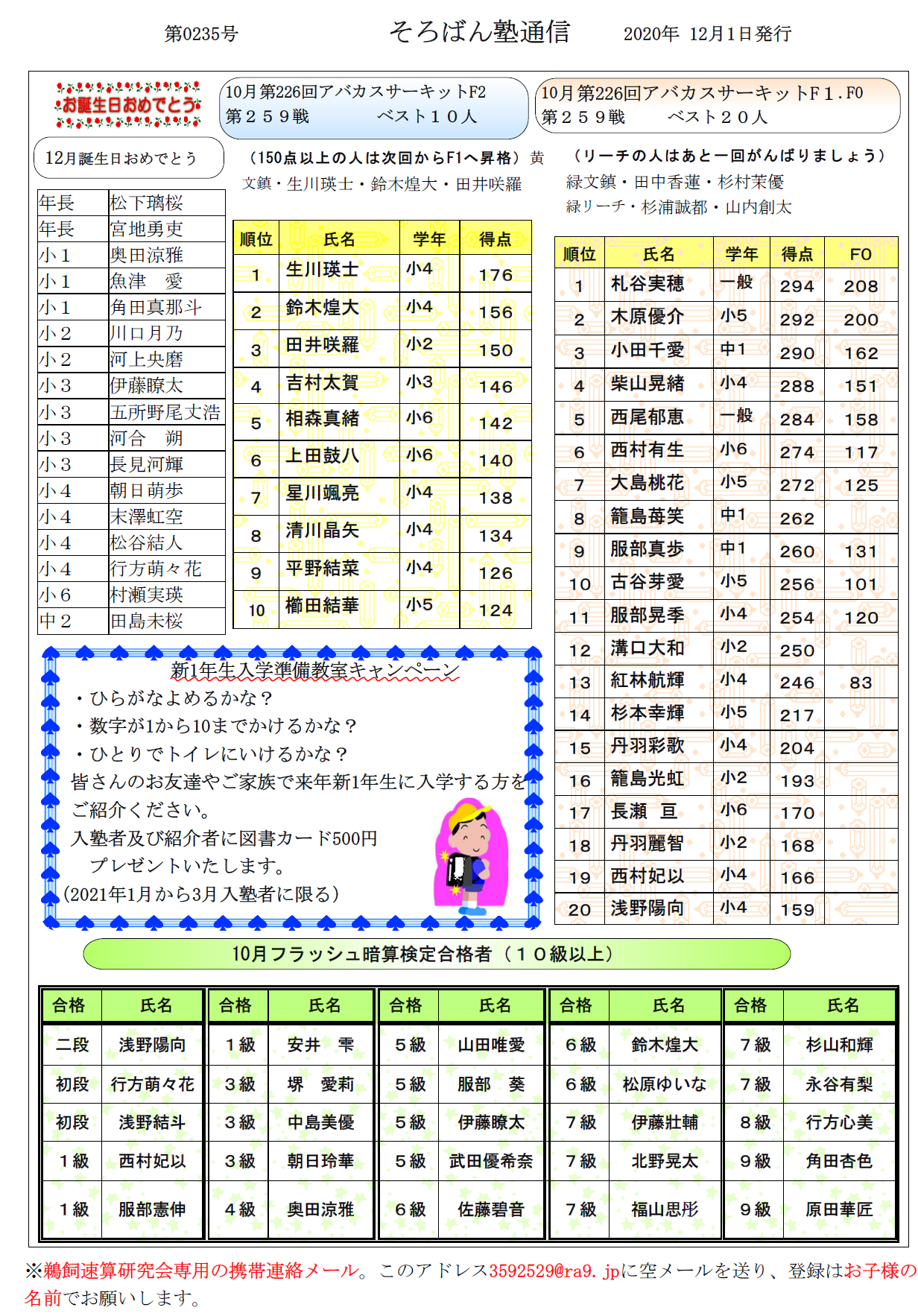そろばん塾通信:第235号
