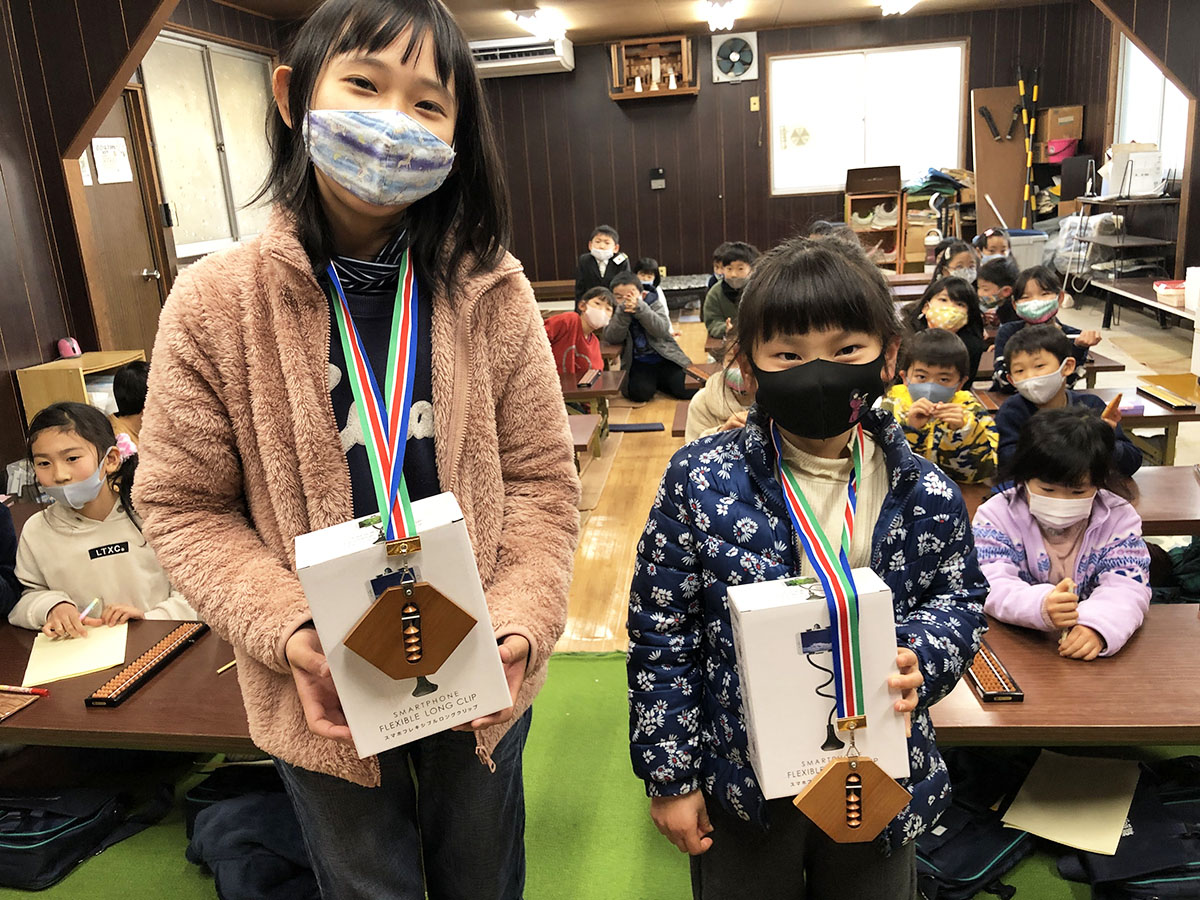 『鬼滅の刃』を使った面白プリントで「そろばんはじき始め」やその他ビンゴ大会などもしました。