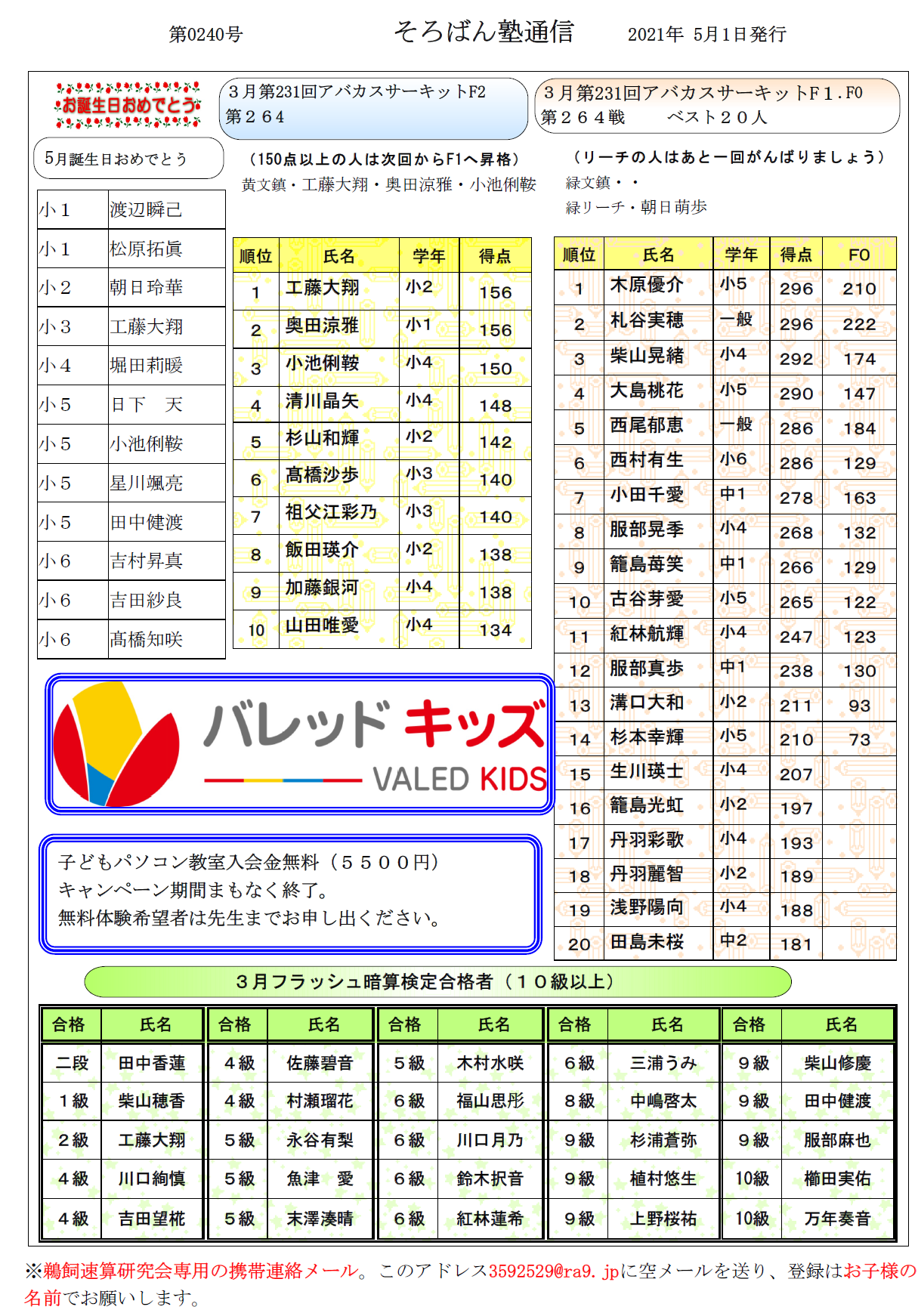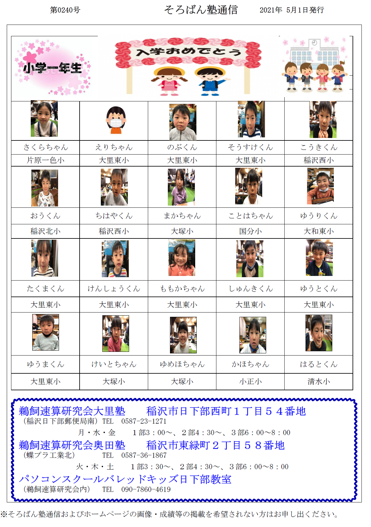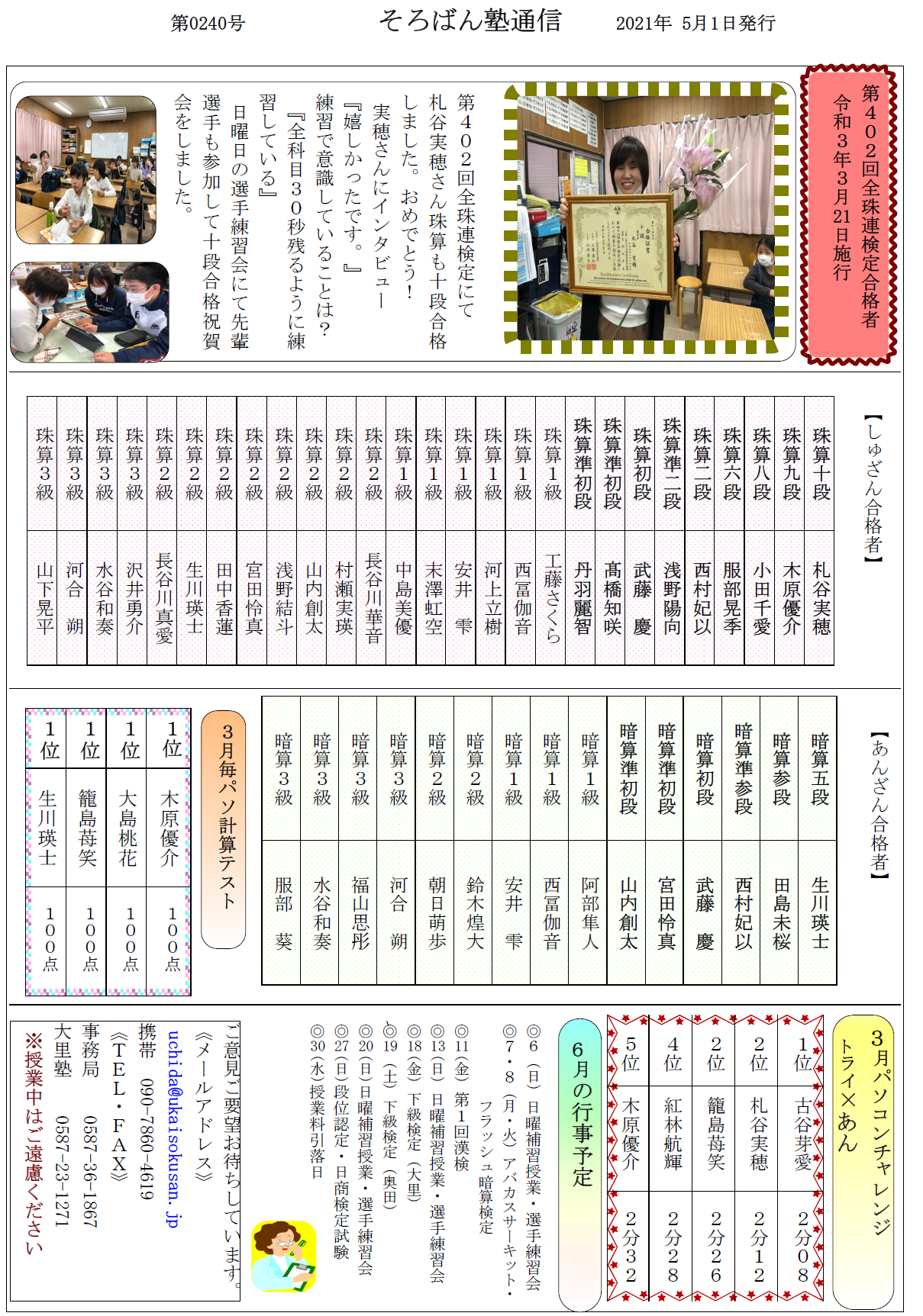 そろばん塾通信:第240号