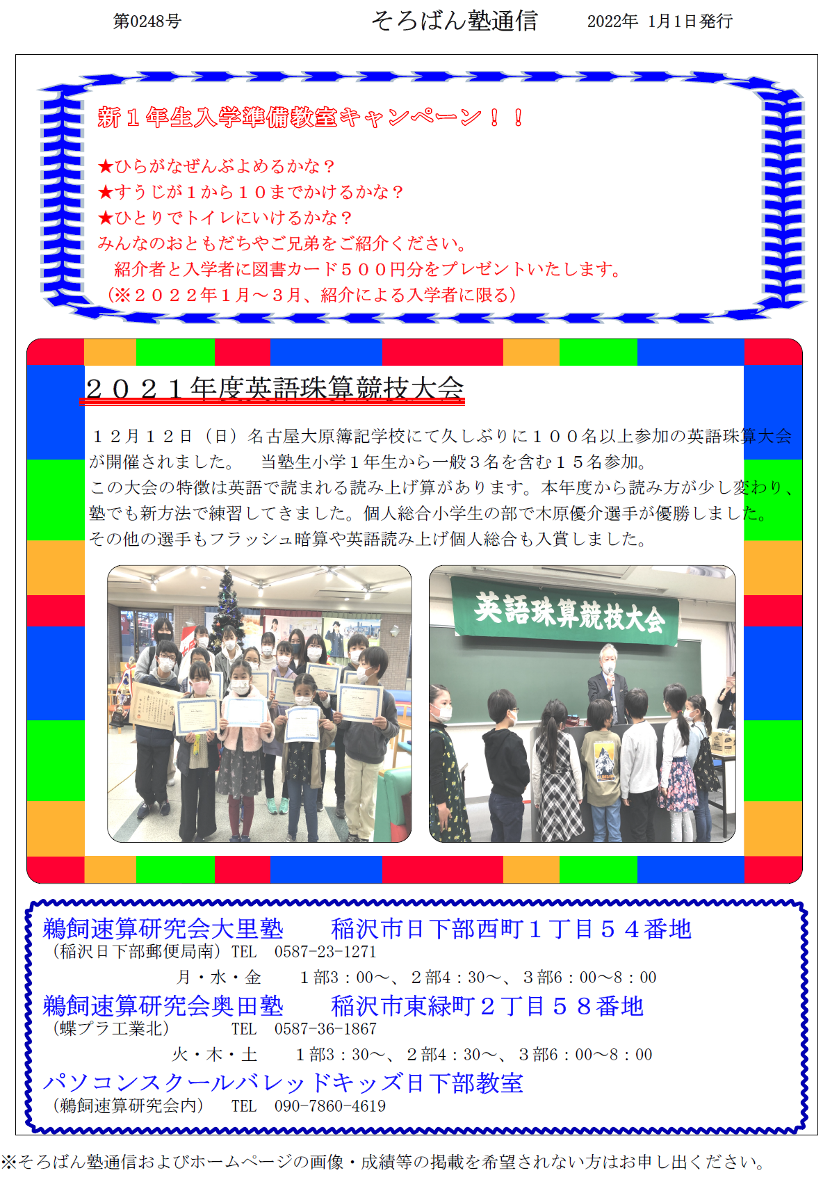 そろばん塾通信:第248号