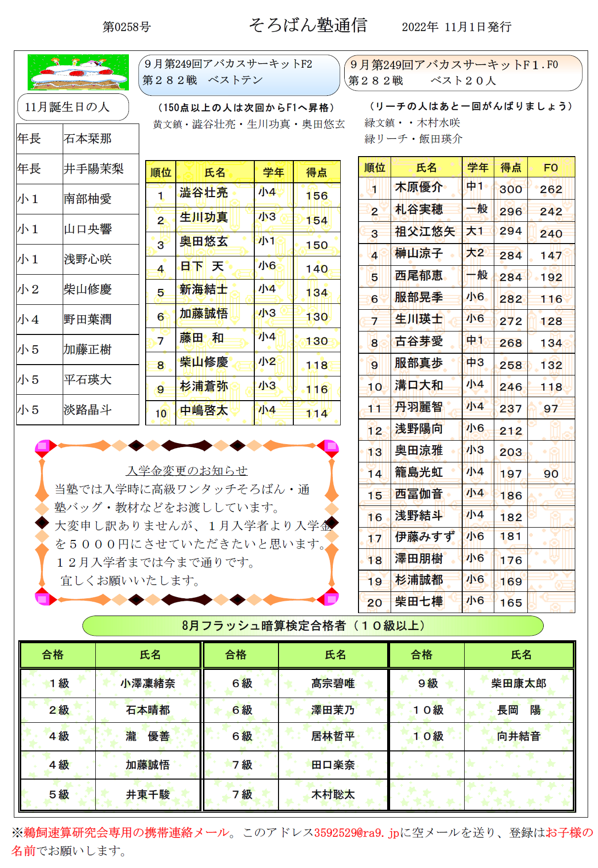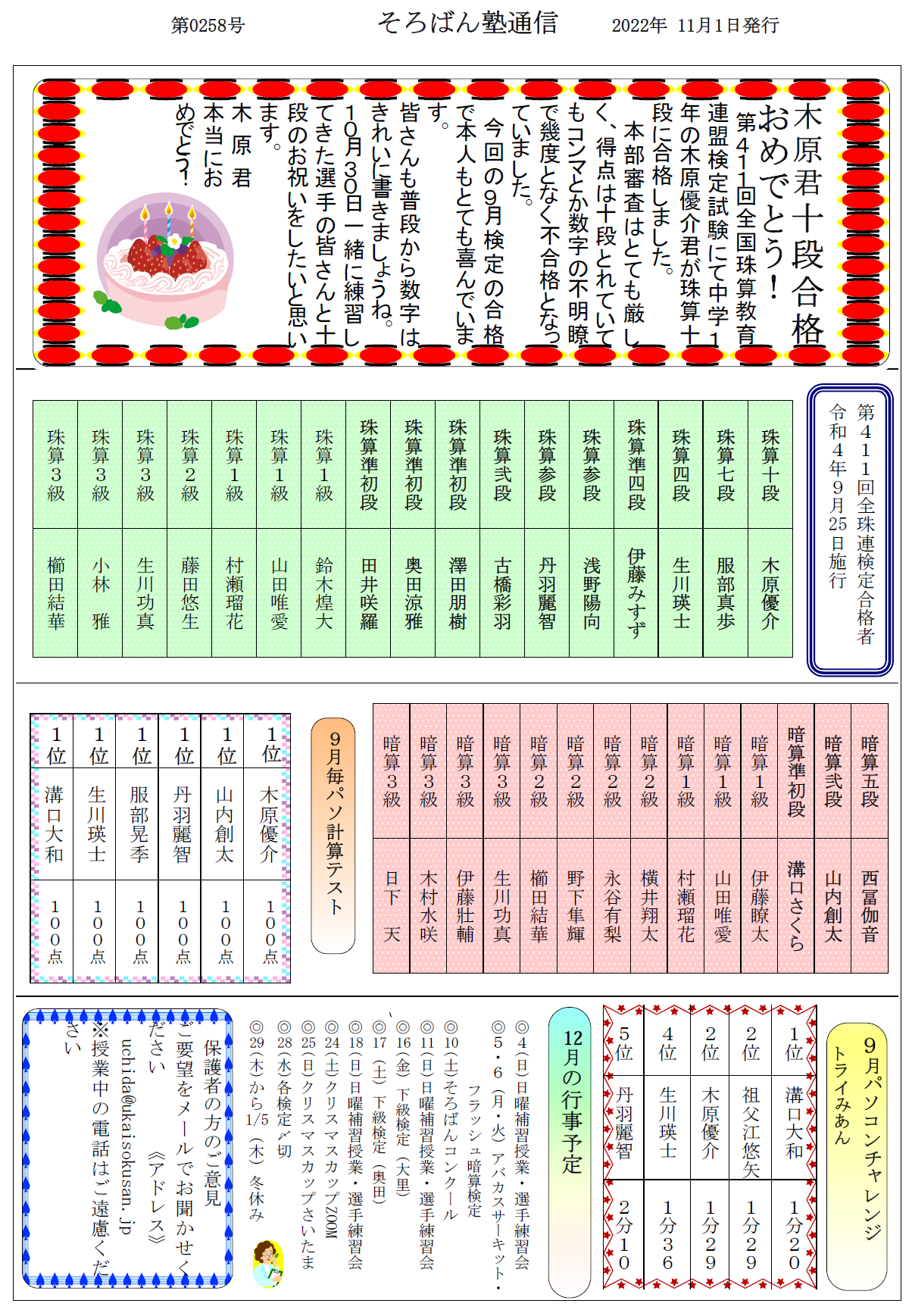 そろばん塾通信:第258号