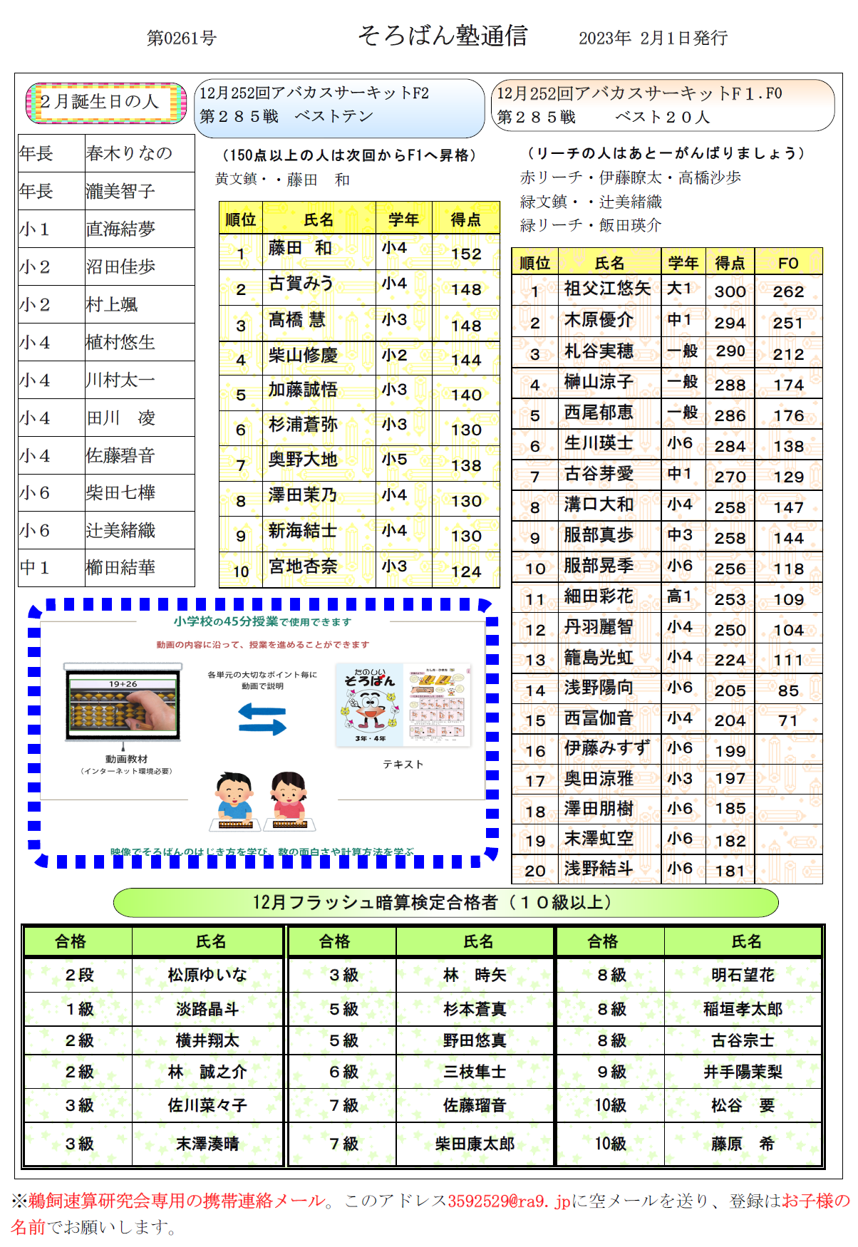 そろばん塾通信:第261号