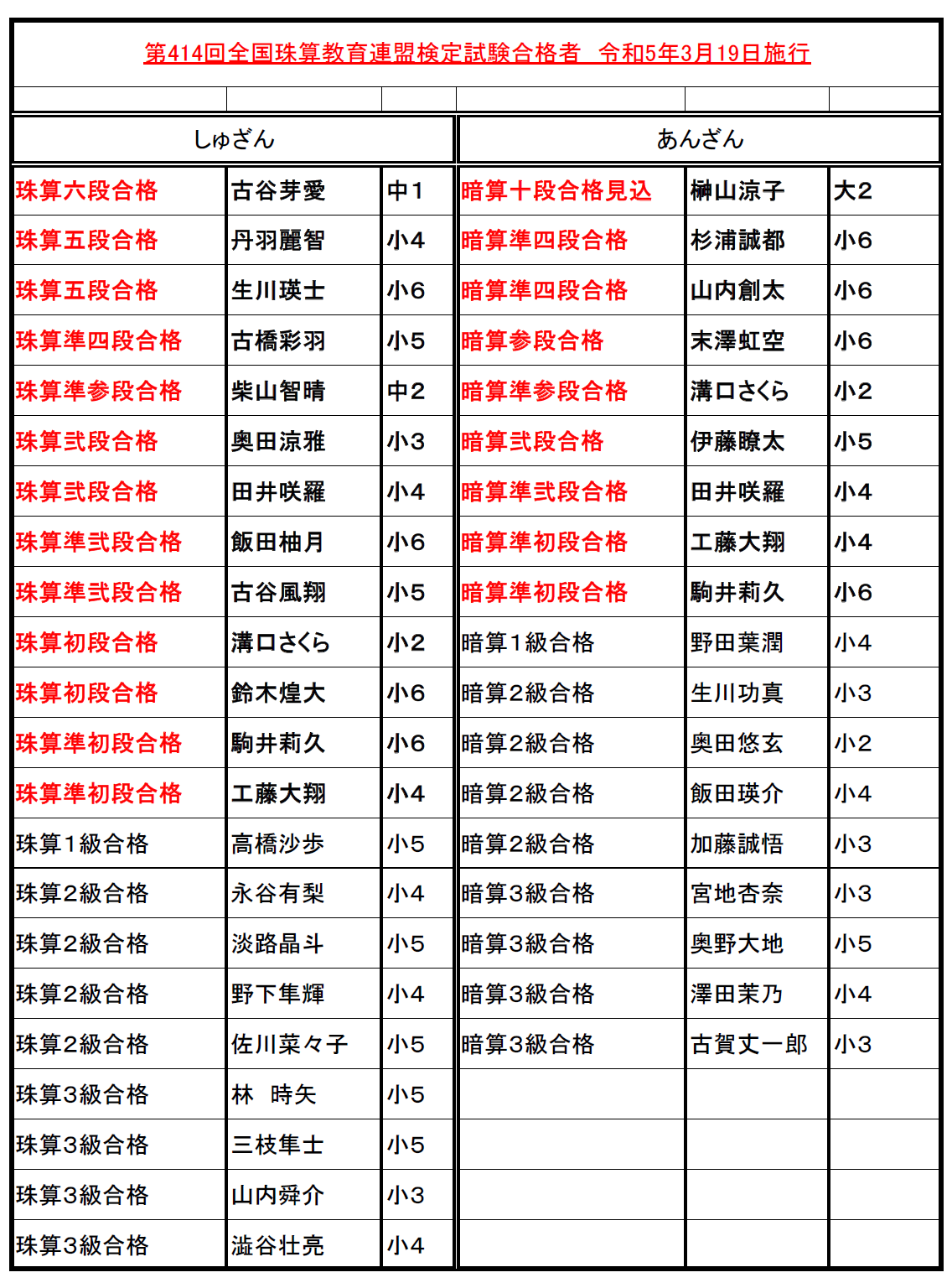 第414回全珠連検定試験にて暗算10段(本部審査済)が誕生しました!