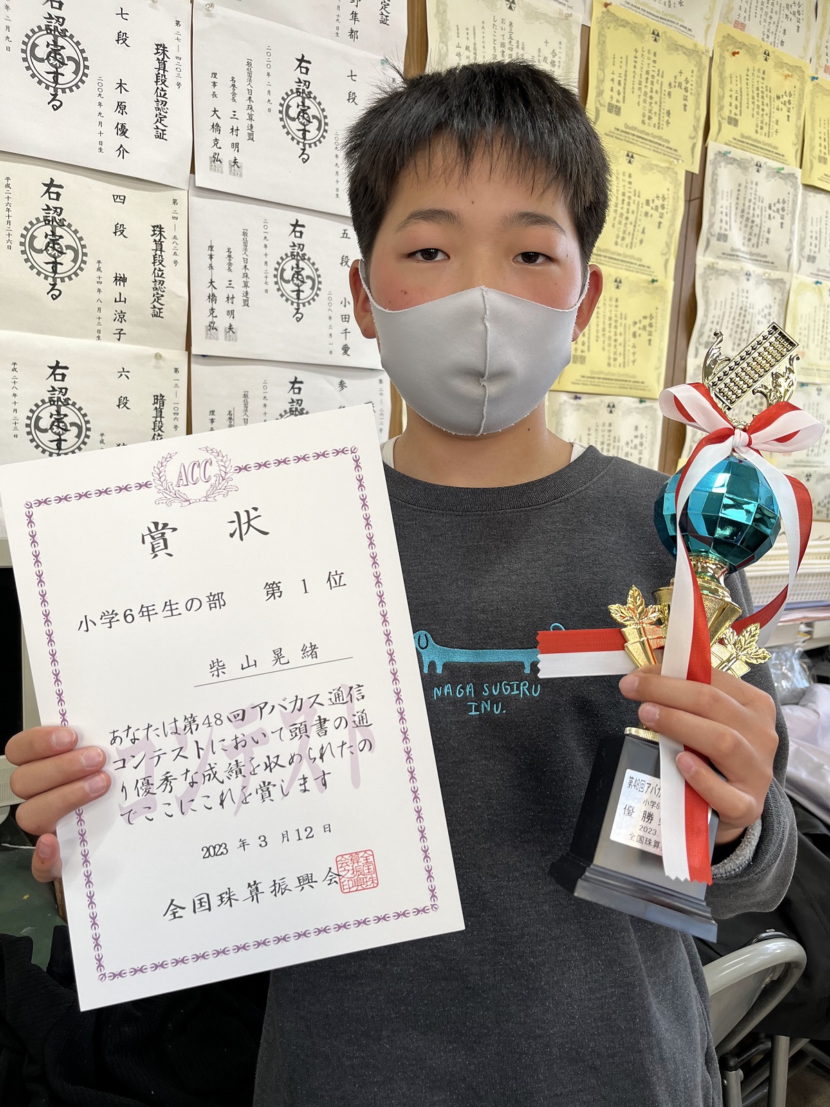 2023年2月19日施行の第48回アバカス通信コンテストにて当塾から学年別の全国第1位が2名でました