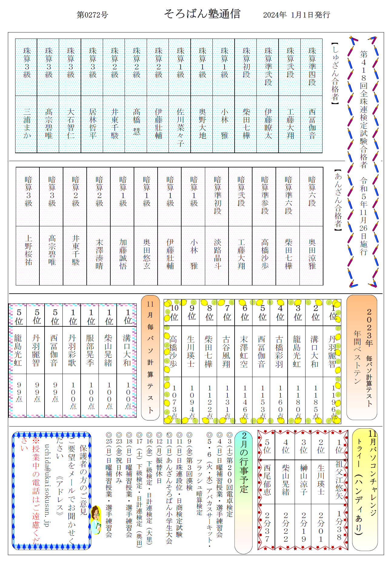 そろばん塾通信:第272号
