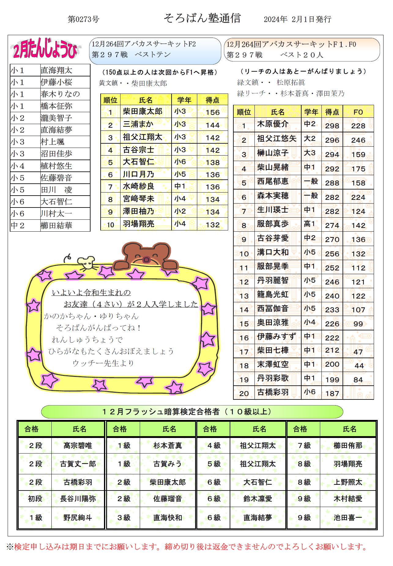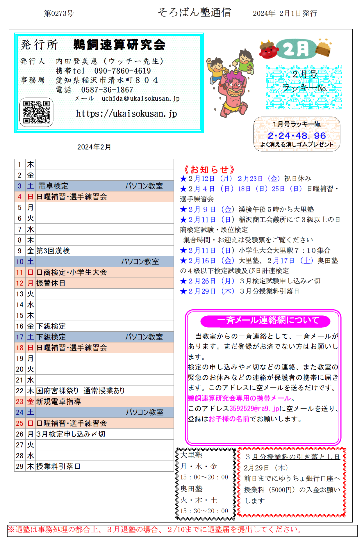 そろばん塾通信:第273号