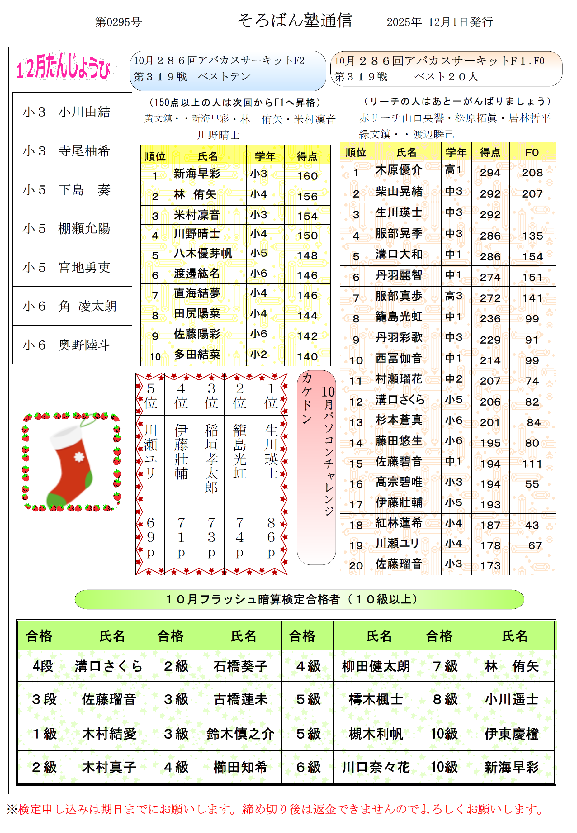 そろばん塾通信:第295号